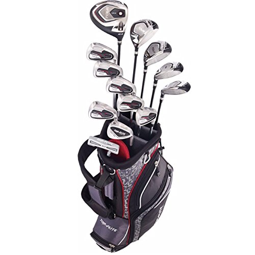 Enjoy all of the equipment you need from tee to green with Top Flite Tour Complete Set. The 460cc Titanium driver has 3 face angle setting so you can easily tune in your preferred ball flight path. Fairway woods and hybrids provide versatility to your bag so you can take on even the most challenging of shots with ease. Undercut, wide sole irons help quickly get the ball into the air for maximum distance. Finish off the hole with a Tour-designed blade putter to consistent feel and superb accuracy.